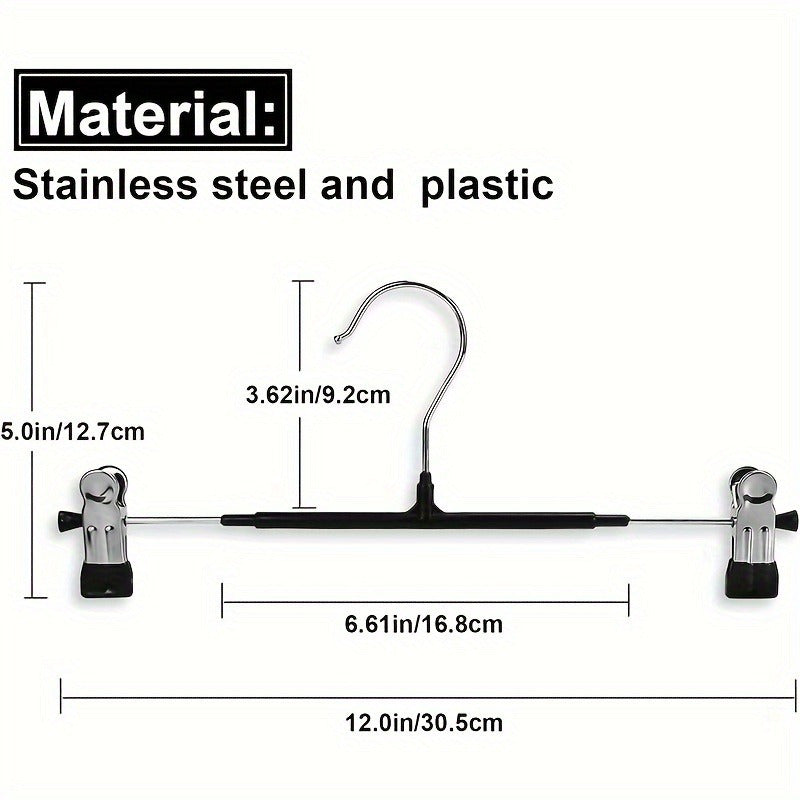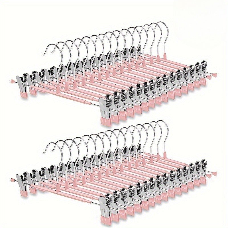 10pcs Pink 12-Inch Adjustable Clip Hangers for Pants, Skirts, Jeans & Youngsters Clothes - Space-Saving Metal Hangers with Polished Finish, Durable Plastic-Coated Clips for Secure Hold, Clothing Organizatio